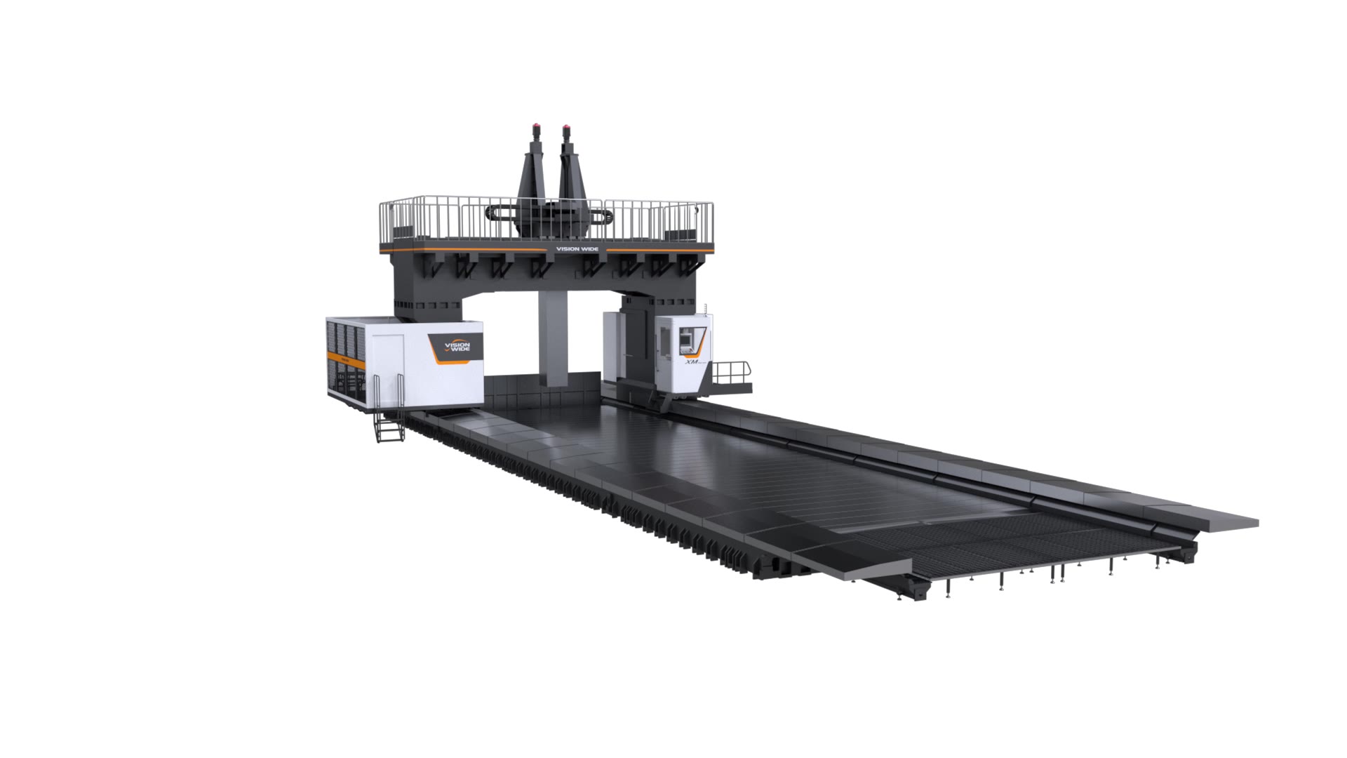 The Vision Wide XM Series is the top of the range in Vision Wide’s line-up — an extremely mighty moving column machining centre built for the heaviest, largest, and most demanding structural machining applications on the planet. With X-axis travel starting at 8,200 mm and extendable up to 60,200 mm, the XM Series is engineered for precision machining of enormous structural parts used in electric power generation, wind energy, oil and gas, petrochemical processing, transportation infrastructure, and heavy industrial equipment. When the workpiece is too large to move — the column moves instead.