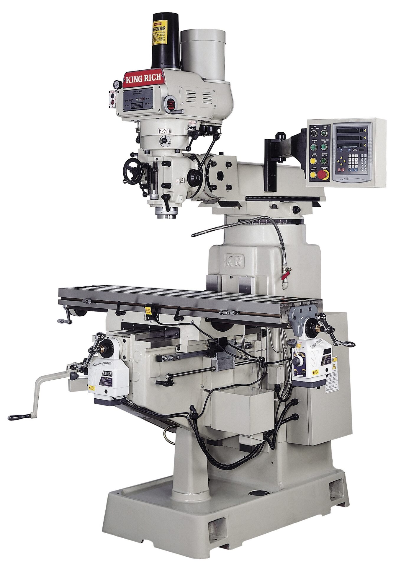 The King Rich V Series is a range of robust, high-performance manual vertical knee mills designed for precision machining and heavy-duty operations. Available in three table sizes (KR-V2000, KR-V3000, KR-V3000SL), this series suits job shops, toolrooms, and training environments. With decades-long parts availability, these machines are built to stay accurate and productive for the long haul.